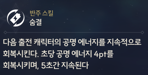승천하는 용은 E 스킬을 최초 사용하면, 공중 부양 상태인 용을 타고 하늘로 향해 상태가 되고 이상태에서 일반공격을 4회 이상 가하면, 승천하는 용 으로 공명 스킬이 변하게 된다. 이를 이용해서 공명 해방과 공명 회로로 강력한 한방 범위 피해를 주는 0티어 딜러라고 할 수 있다.