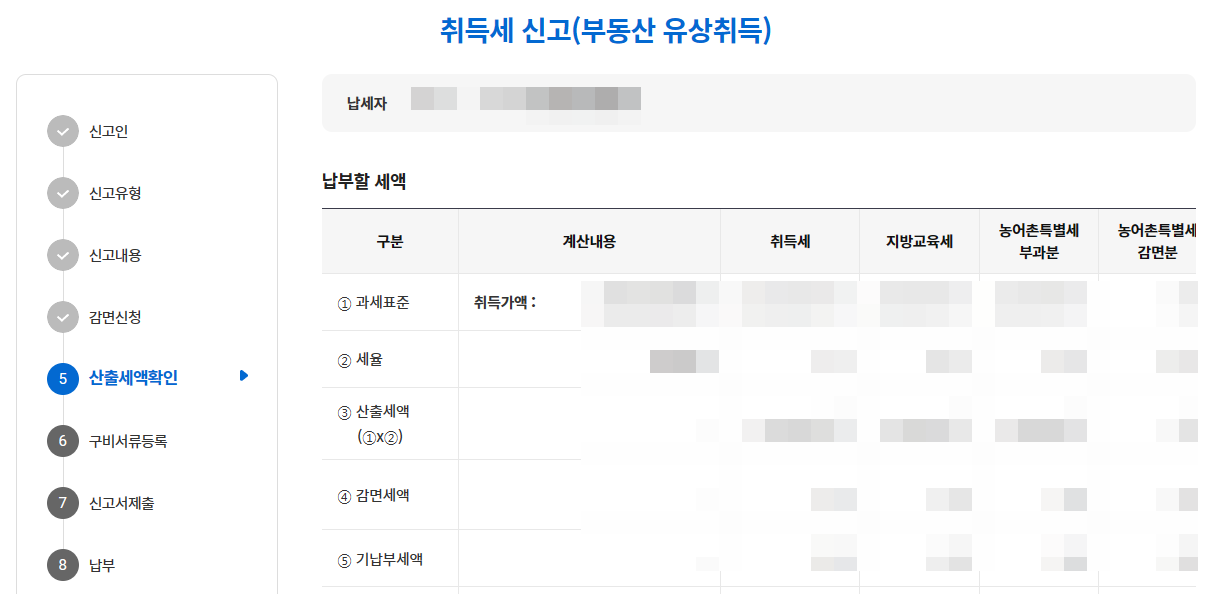 이후 산출된 세액을 확인하고, 본인이 예상한 금액이 맞는 잘 확인한후에 납부를 진행한다. 만약 맞지 않다면 구청 세무과에서 진행하기를 추천한다.