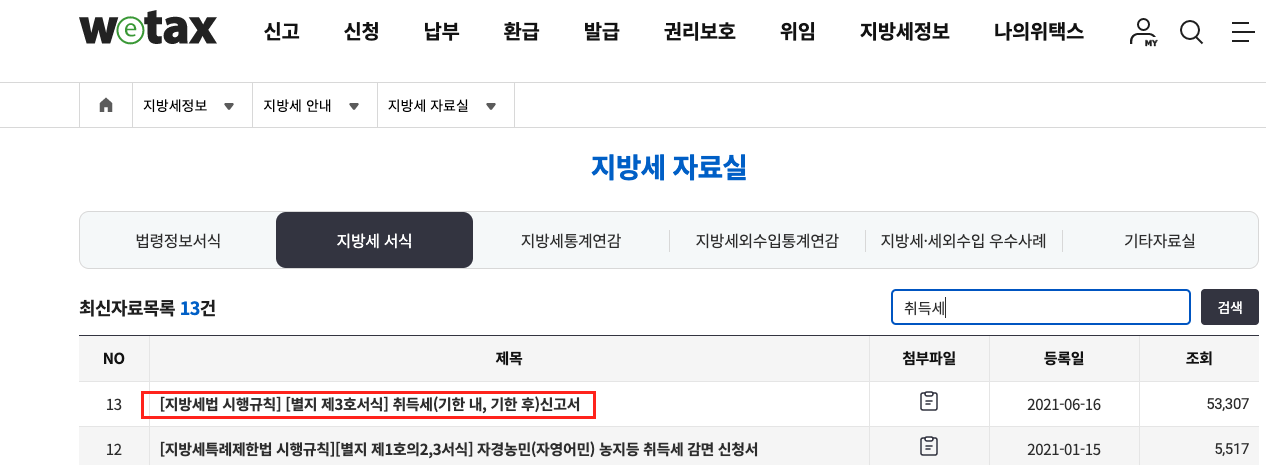 취득세 신고서는 위텍스에서 확인이 가능하다.