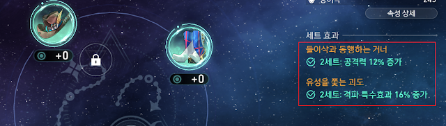 유물은 초반에는 세트효과 위주로 사용하면 충분하며, 여유가 되면 4성급부터 일부 강화를 진행하면 된다.