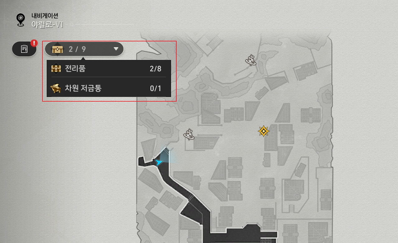 그리고 지도를 활용하면 현재 필드에 존재하는 전리품이나 회수 가능한 물품이 얼마나 남아있는지 알 수 있기 때문에 이 기능을 이용하여 필드에서 획득할 수 있는 전리품을 찾으로 돌아다니는 수고를 조금은 덜 수 있다.