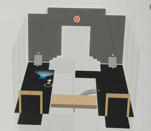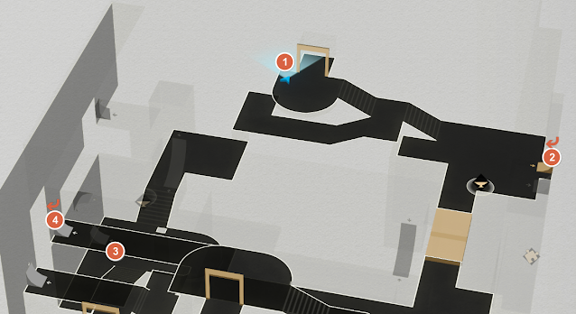 - 중앙 큰방의 거품 다리를 사용하지 않고 홀 끝 쪽에 문이 하니 있다. 그 안쪽 방의 책장에 숨어 있다.