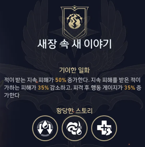 그리고 황당한 스토리 버프는 험담을 이용하여 보존이나 풍요를 파티에서 제외할 수 있기 때문에 상당한 강점이 있는 버프이다.