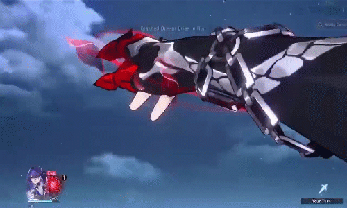 [불완전한 꿈]을 1pt 획득한다. 지정된 단일 적에게 [적홍 매듭]을 1스택 부여하고, 아케론 공격력의 112/160% 만큼 번개 속성 피해를 가한다. 동시에 인접한 목표에게 아케론 공격력의 42/60%만큼 번개 속성 피해를 가한다