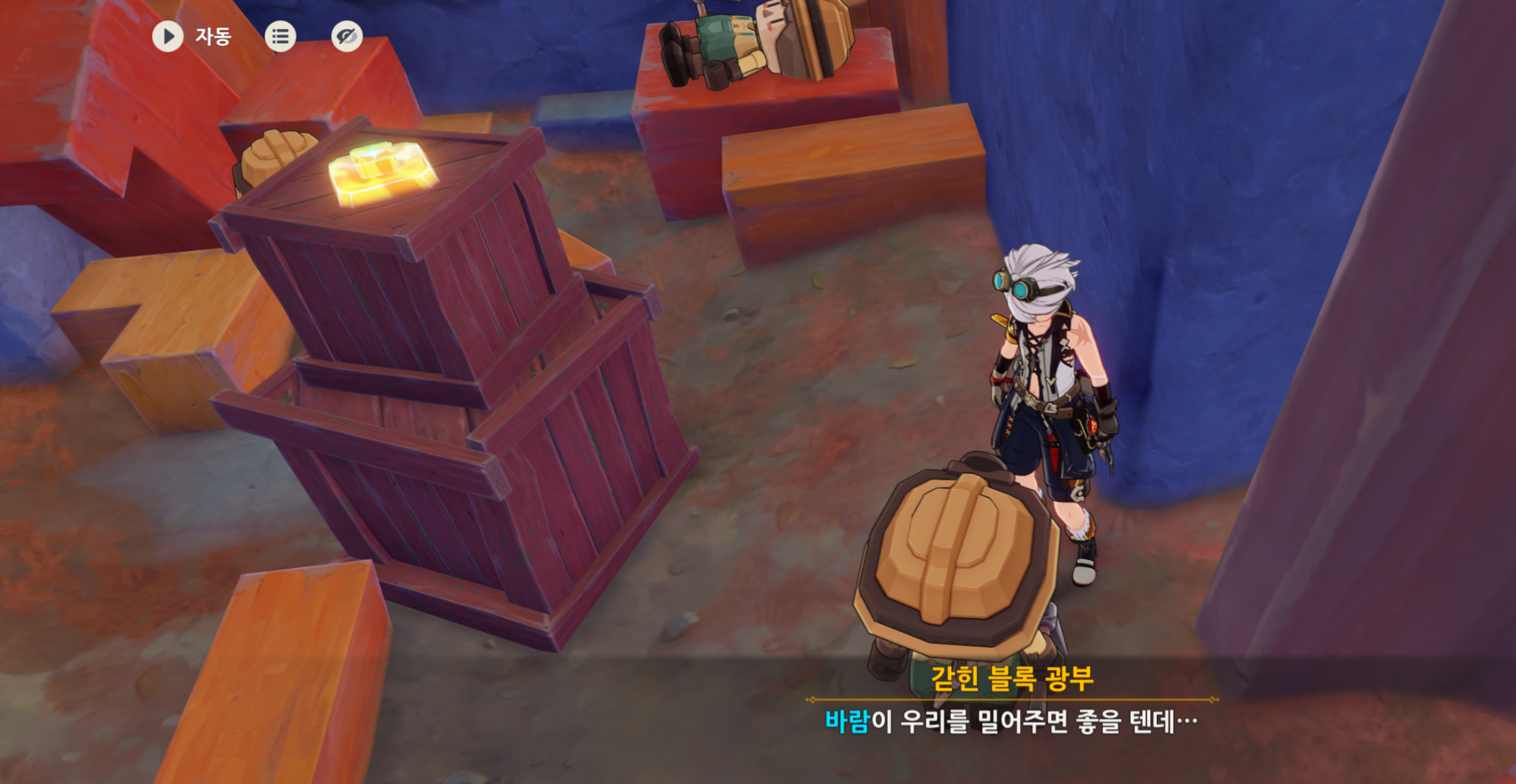 두번째로 난이도가 있는 임무는 바람꽃 설치로 아래쪽에 존재하는 광부를 구출하는 건데, 폭탄으로 바람 꽃쪽 입구를 파괴하고 광부에게 얘기를 하면 바람이 필요하다고 한다. 이때 바람 꽃 이동이 가능해 지므로 아래쪽에 설치해주자.