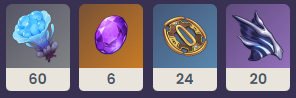 | 라이덴 | 야에 미코 | 베넷/모나 | 디오나/종려/레일라 |