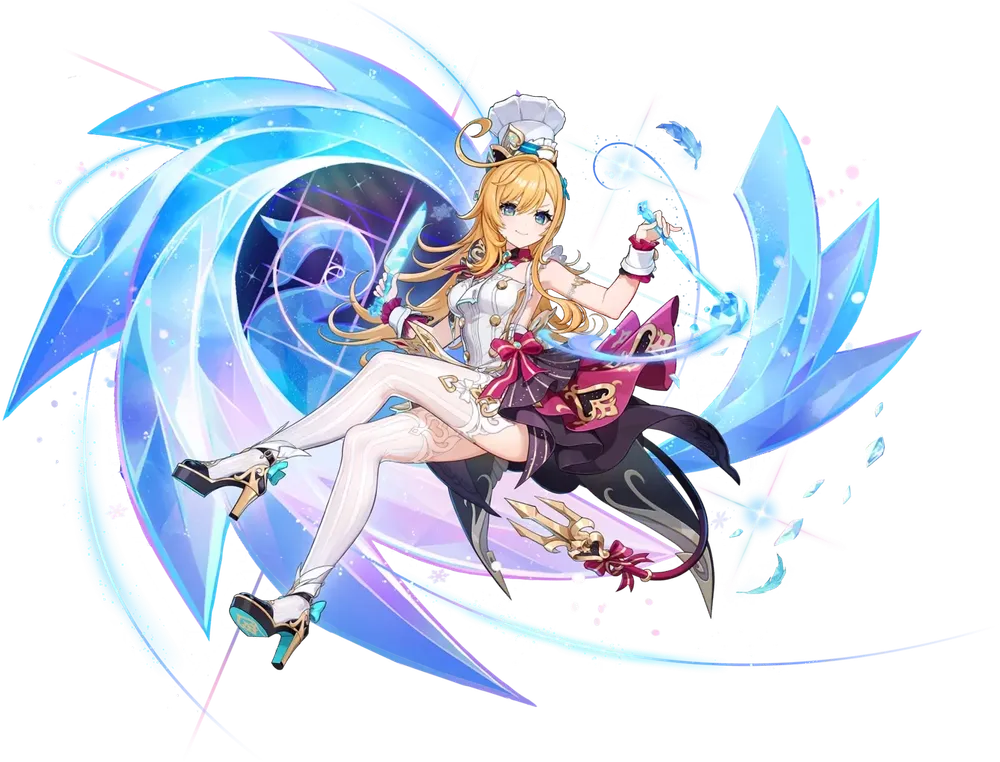 스카르크, 아야카 등과 조합 시 얼음 부착, 내성 감소, 회복 등에서 뛰어난 시너지를 보입니다. 동결 파티, 얼음/물 원소 중심 파티에서 특히 강력합니다.