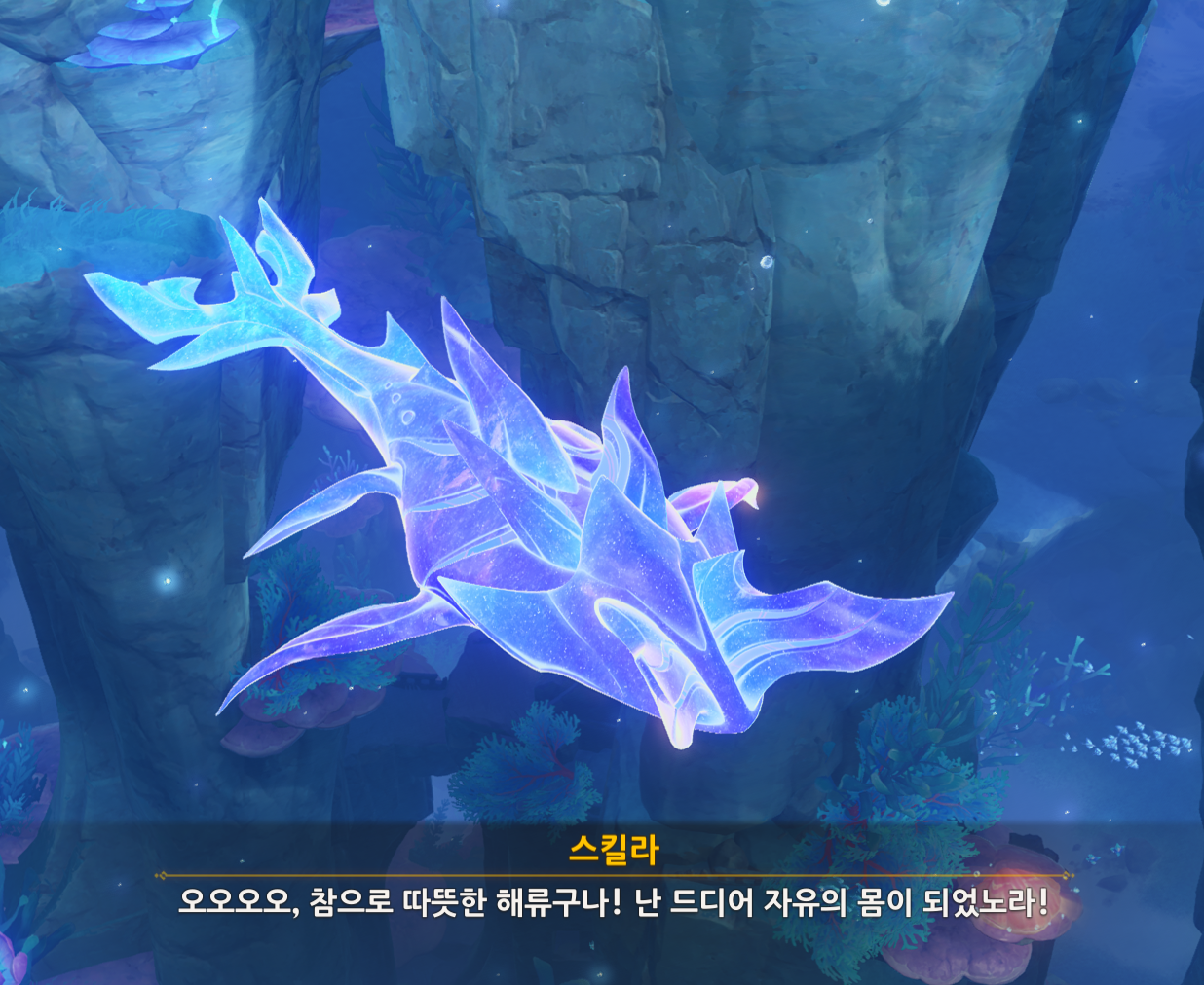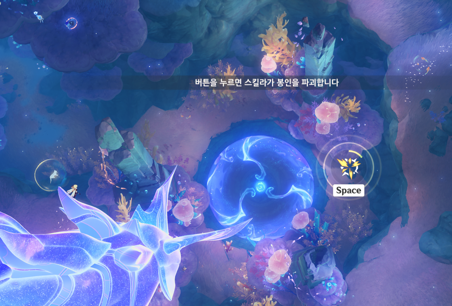 우스 뒤쪽의 환영 입구를 이용해서 들어갈 수 있는데, 들어가면 초반부터 나오던 고래? 가 계속 안내를 하는 느낌으로 들어가게 된다.