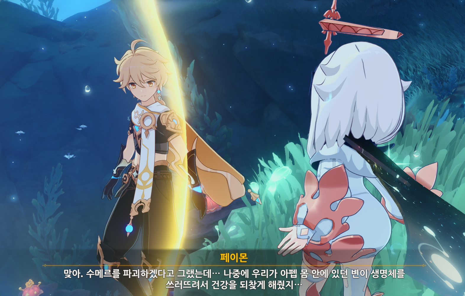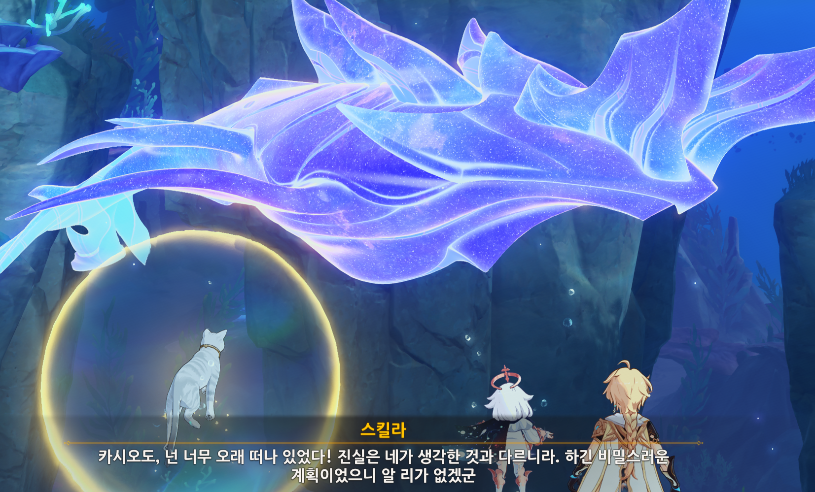 이후 도착해보면, 고래가 묶여 있는 곳에 도착하게 되는데, 실제는 느비예트 이전의 용으로 고대 신과 같은 존재라고 한다.