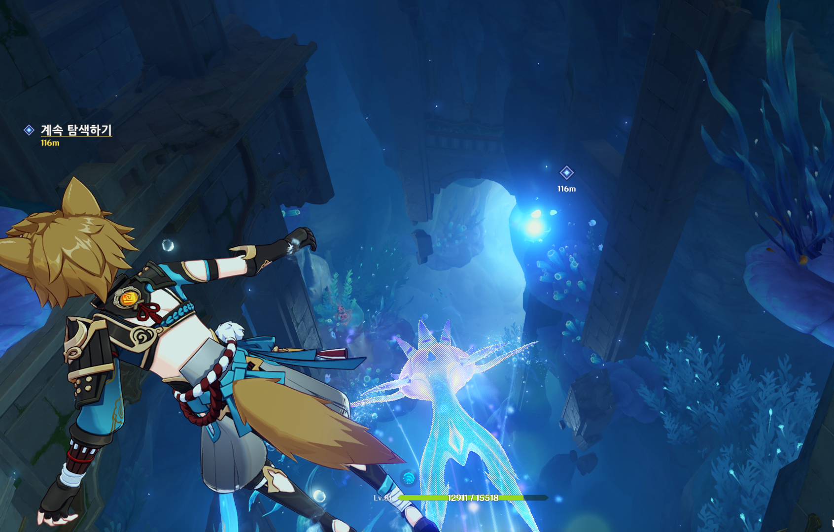 다시 올일이 없을 것 같으니, 뒤에 있는 신의 눈동자도 회수하여 다음 표적으로 이동하며, 중간에 뱀장어 기믹(동시에 나올때 음표 터트리기)도 하면서 다음 봉인 장소로 이동하자.