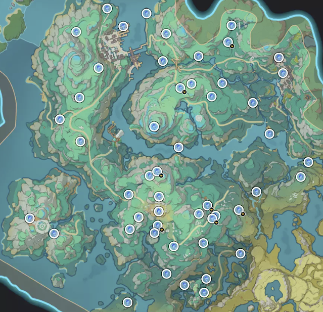 푸른 영력 잉어는 아래 표시에 위치하고 있으므로 필드를 탐험하면서 수집하도록 하자.