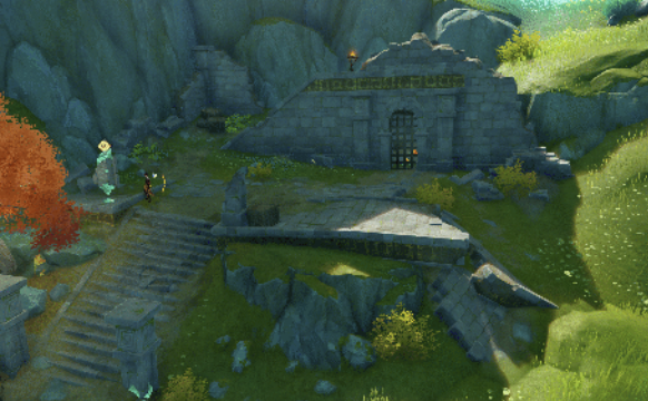 오픈된 철문으로 들어가면, 앞에 보물 상자로 다가가면 유적 가디언이 발동하여 전투를 벌이는데, 중간에 유적 가디언이 강력한것 같다고 안쪽에 옥석의 빛때문인 것 같다면서 옥석이 상호작용이 가능한 상태로 바뀌는데 이때 T키를 통해서 상호작용을 하면 보물 상자가 개방되면서, 유적가디언도 쓰러진다.