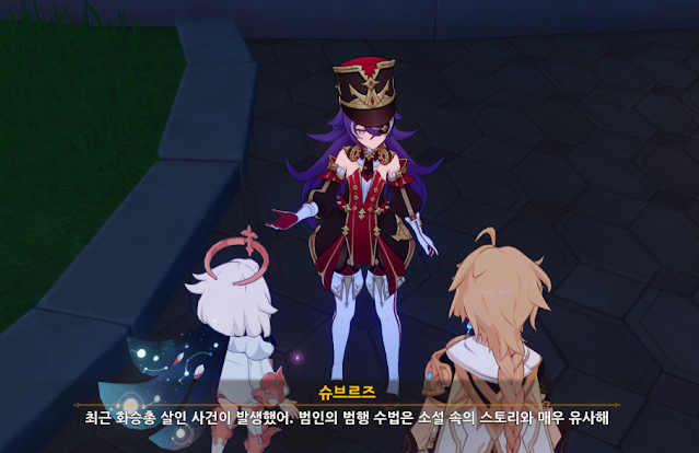 이제 영화 제작에 필요한 모든 사람을 구하게되고, 이후 진행을 위해서 모두 헤어지는데, 슈브로즈와 아직 이벤트가 남아있는 상태로 뒤에 들어가면 실제 슈브르즈가 이번 영화 촬영에 참여한 이유를 알려주는데, 최근 이 소설을 모방한 범죄가 실제로 발생해서 해당 사건을 비밀리에 수사중이고 여행자의 뛰어난 능력을 도와달라고 한다. 오늘은 자세한 정보를 알려줄 수 없고, 세부적인 결정은 추후에 하자고 하면서 정적을 깨는 총성 임무는 마무리 된다.