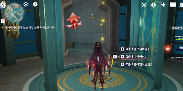 그리고 다시 임무로 돌아오면, 아야토 , 아야카, 치오리를 만나기 위해 아래 폰타인 성 중앙으로 이동하여 나비아선으로 가자.