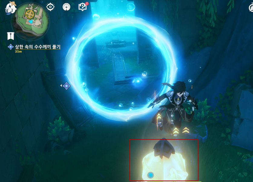 문을 바라본 상황에서 오른쪽 기믹은 이미 수로에 맞게 맞추어져 있어서 바로 방류만 하면 된다.