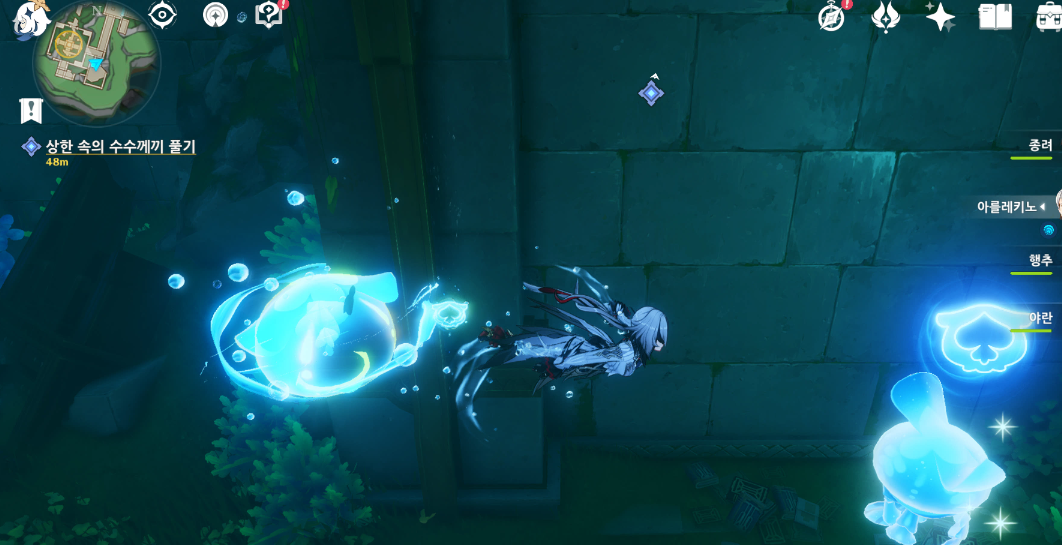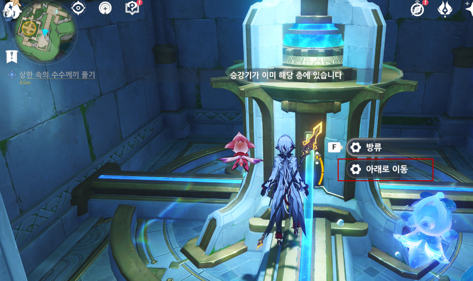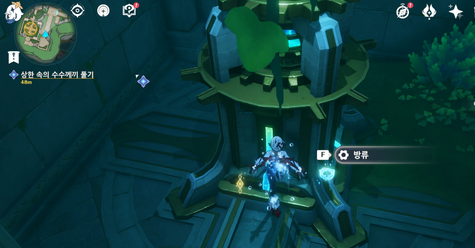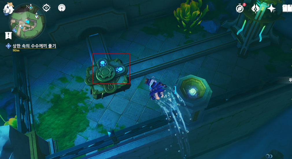 기믹은 물을 흐르게 수로를 활성화는 것으로 진행할 수 있고, 크게 어렵지 않다.