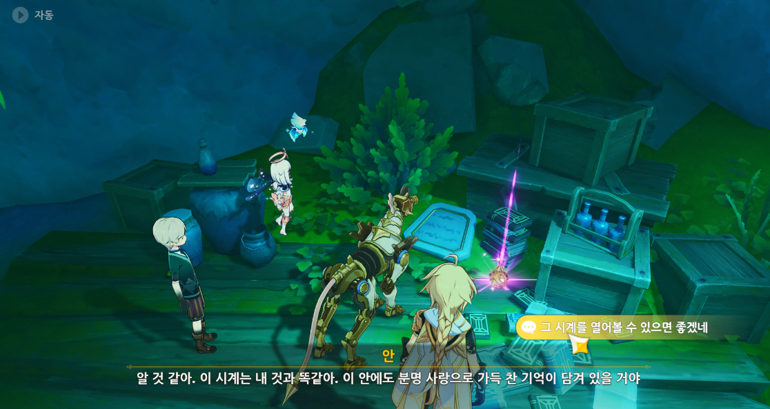 도착하면 자동으로 이벤트가 진행되면서 이 수수께끼는 이미 누가 풀었다면, 님프의 시시각각을 회수하여 다음 장소로 이동한다.(이동전에 물속의 워프 포인트도 잊지말자)