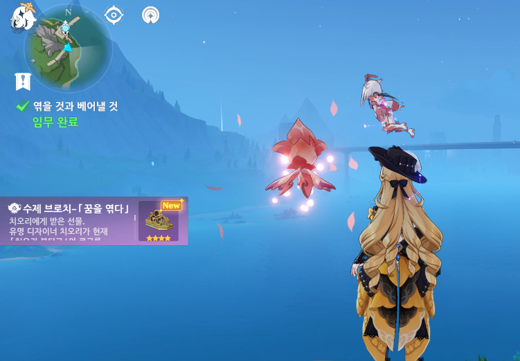 그리고 다시 치오리와 절벽에서 만나기로 약속을 하고 약속장소에 가면, 치오리가 자신을 도와준 보답으로 브로치를 선물받으면서 치오리 전설 임무가 마무리 된다.