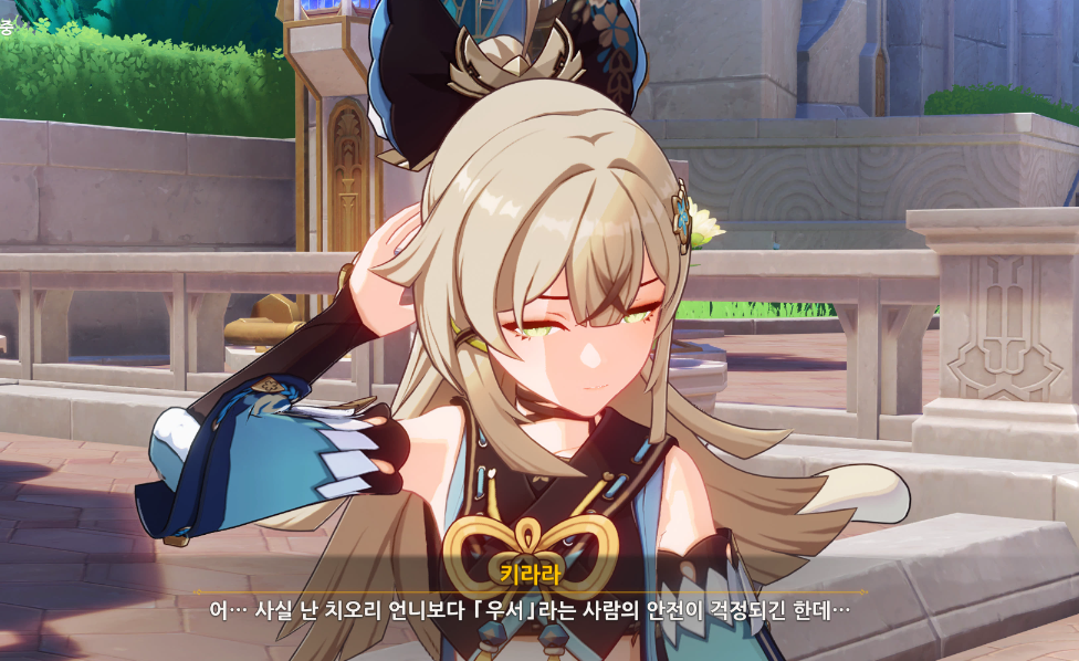 임무의 시작은 치오리 가게 앞에서 진행이 되는데, 키라라가 물건을 배달하던중에, 키라라에게 소소한 문제가 발생했다는 것을 치오리가 알게되고, 범인 우서를 교훈?을 주기위해서 치오리가 나서게 된다.