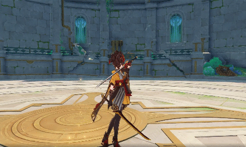 - 깃소매의 촉의 올려치기 공격 발동 후 짧은 시간 내의 후속 조작에 따라 각기 다른 효과가 발생한다: 원소전투 스킬을 다시 터치하면 후속 효과 「직금」을 발동한다. 일반 공격을 터치하면 후속 효과 「재단」을 발동한다.