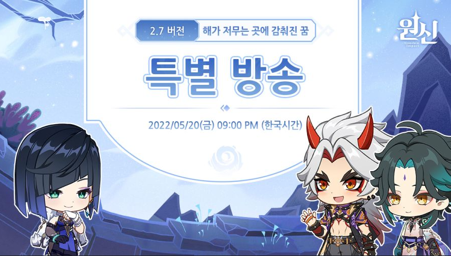 원신 2.7 특별 방송 예고 및 업데이트 일정