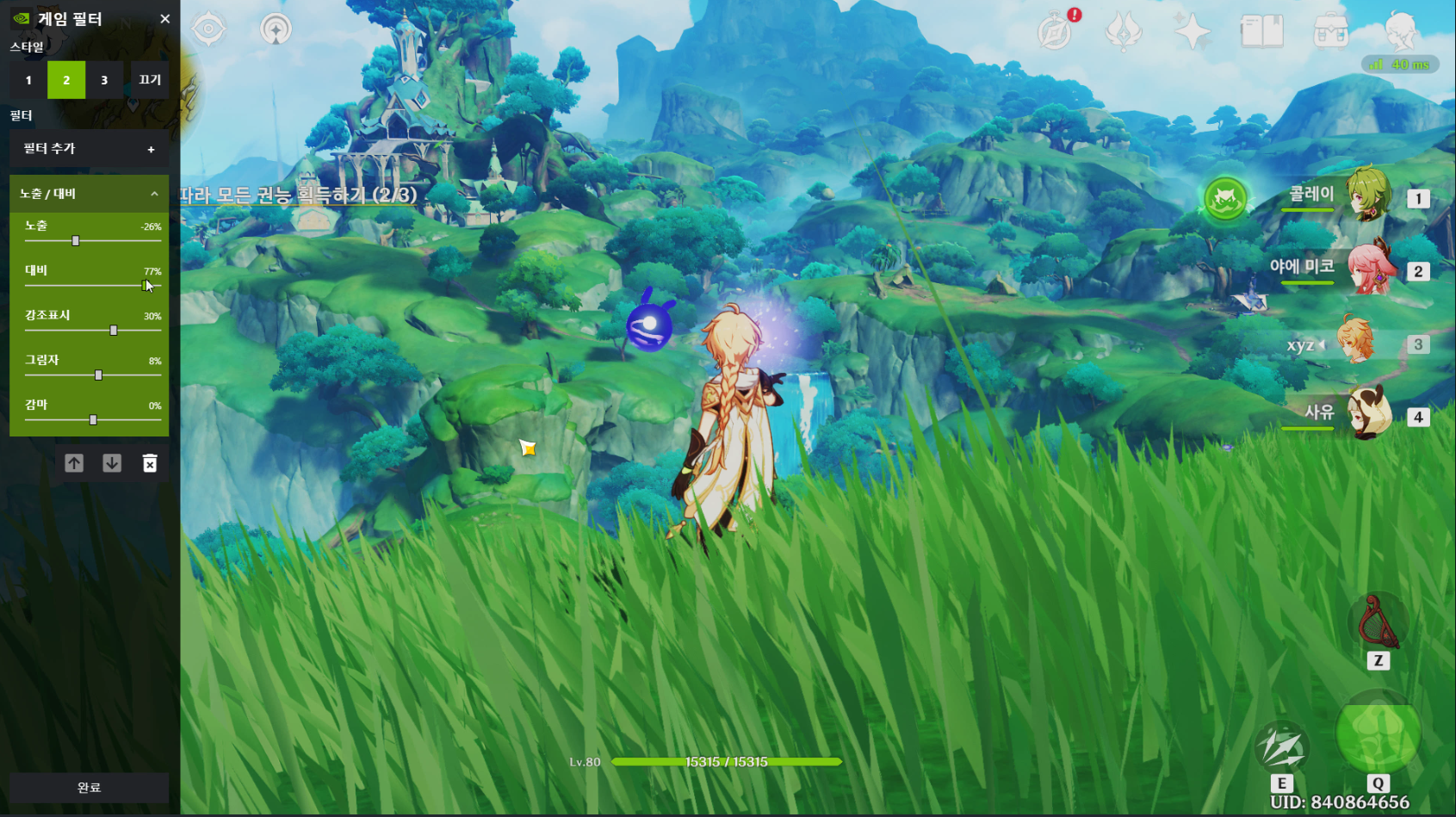 하지만 현재 색감이 너무 강해서 게임 플레이를 하기에는 원활하지 않아 적당한 것을 찾던중에 Geforce Experience를 통해서 조금은 색다른 느낌을 구사할 수 있음을 알게 되었다.