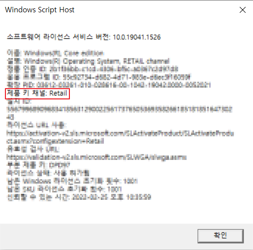 실행하면 아래와 같은 화면을 통해 제품 키가 어떤 타입인지 알 수 있다.