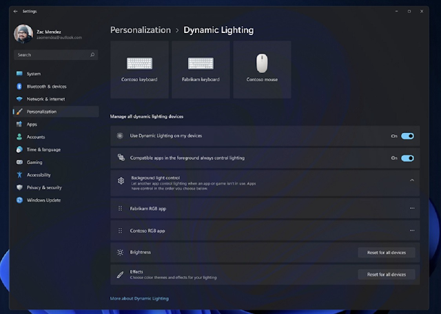RGB 조명을 지원하는 하드웨어의 조명을 제어할 수 있는 기능이 추가되었습니다. Windows 설정 또는 Microsoft Store에서 제공되는 앱을 통해 조명을 조정할 수 있습니다.