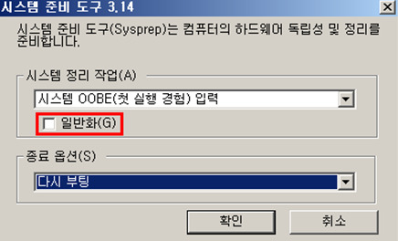 // OOBE 방식으로 일반화하고, SID 변경 완료시 재부팅