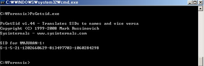 이 값과 Sysinternals사에서 머신 SID 확인 도구를 이용하여 변환한 값이 맞는지 확인해보자.
