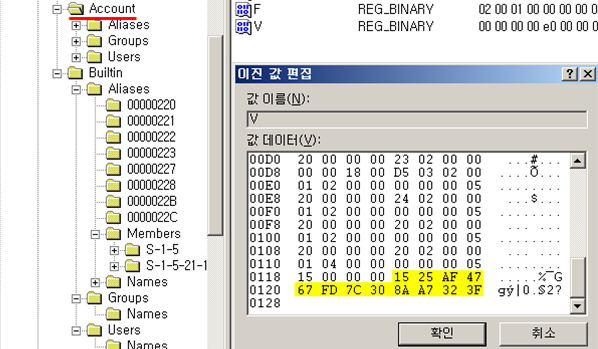 단지 이 부분은 도메인 로그인이 아닌 로컬 로그인 시 사용되는 부분이라는 점을 먼저 애기하도록 하겠다. 즉 이 파일에서 도메인 계정에 대해서는 확인할 수 없다(도메인 환경에서는 도메인 컨트롤러라는 별도의 서버에서 Ntds.dit라는 별도 데이터베이스를 이용하여 계정을 관리한다).