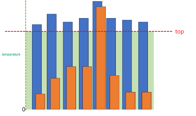만약 tempeature가 1에 가까울 경우 AI는 최대한 결과 데이터의 편차를 많이 만들기 위해서 노력한다. 아래그림을 고려하면 주황색 과 같이 결과에 가장 가까운 데이터에 대한 score를 높게 하여 최선의 답을 찾도록 한다.