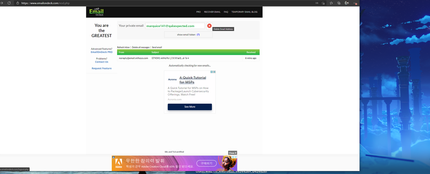 원신을 최근에 시작하였는데, 현재 원신은 더이상 게스트 로그인을 지원하지 않아 리세마라를 하기 위해서 메일 주고가 필요하다.