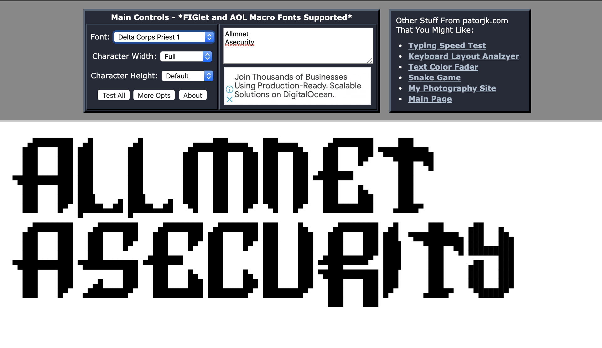 만약 글자를 이용해서 특징을 주고자 한다면, http://patorjk.com/software/taag/#p=display&f=Graffiti&t=Type%20Something%20 링크에서 쉽게 작업이 가능하다.