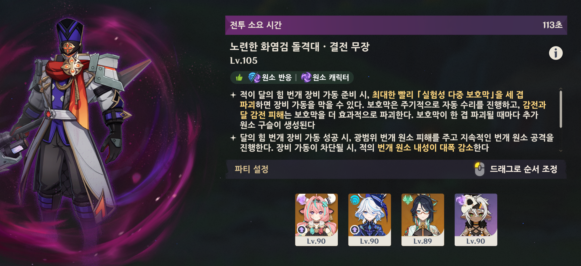 한운의 원소폭발을 발판삼아 연속적인 낙하 공격을 퍼부어서 빠르게 돌파하는게 핵심이다.
