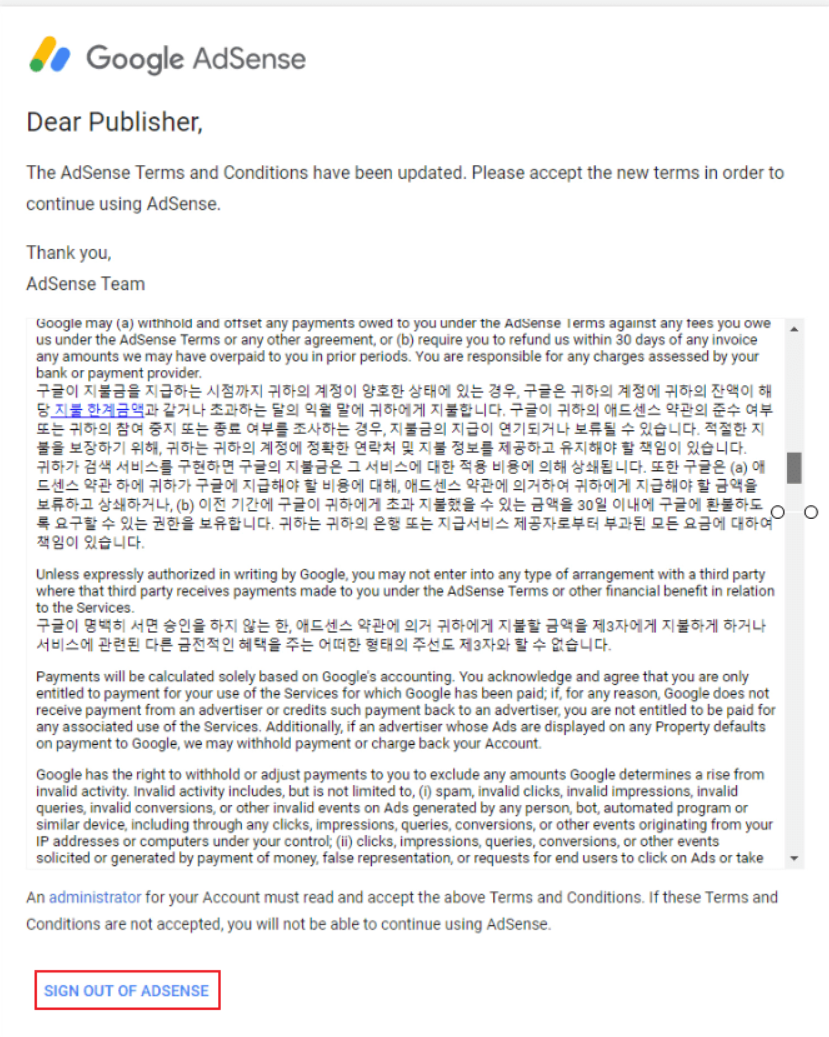 If you only show “SIGN OUT OF ADSENSE”, This reason is because the user who added the Administrator privilege, not the origin account.