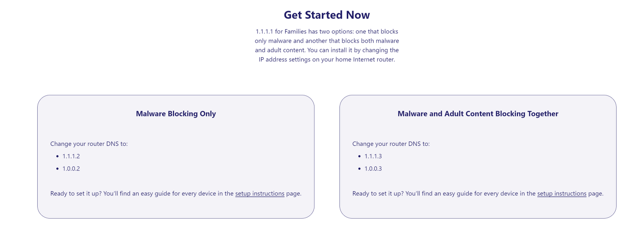 DNS - 1.1.1.2/1.1.1.3 가족과 함께 사용한다면, Block to Malware and Adult