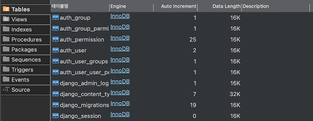 만약 models을 생성하였거나 변경하는 경우 변경할 내용에 맞춰서 파일이 생성된다.
