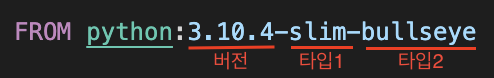 Tag는 : 다음부터 작성된 내용이 Tag로 사용되는데, 앞에 메인이 되는 Python, Node와 같은 개발할 환경을 선택하고 이후 Tag를 통해 버전을 지정하게 된다.