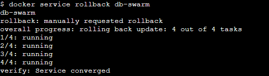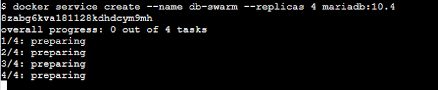docker service create --name db-swarm --replicas 4 --env MARIADB_ROOT_PASSWORD=password mariadb:10.4
