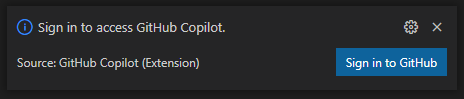 아래와 같이 팝업 창을 눌려서 Copilot이 가능한 계정을 로그인하여 가능하다.