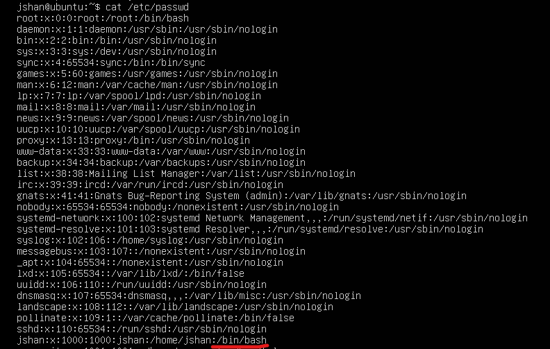 현재 로그인 가능한 사용자를 확인하고자 한다면, /etc/passwd 파일에서 /bin/bash로 지정된 사용자는 로그인이 가능하다고 판단할 수 있다.