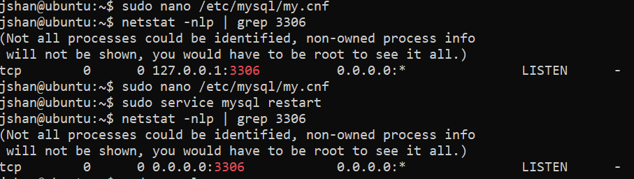 그리고 다시 서비스를 재시작하고 netstat -nlp | grep 3306을 통해 확인해보면 네트워크 전체에서 접근이 가능하도록 변경되는 것을 확인할 수 있다.