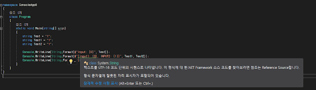 하지만 String.Format에서는 중괄호는 기본적으로 값을 치환하는 역활을 합니다.
