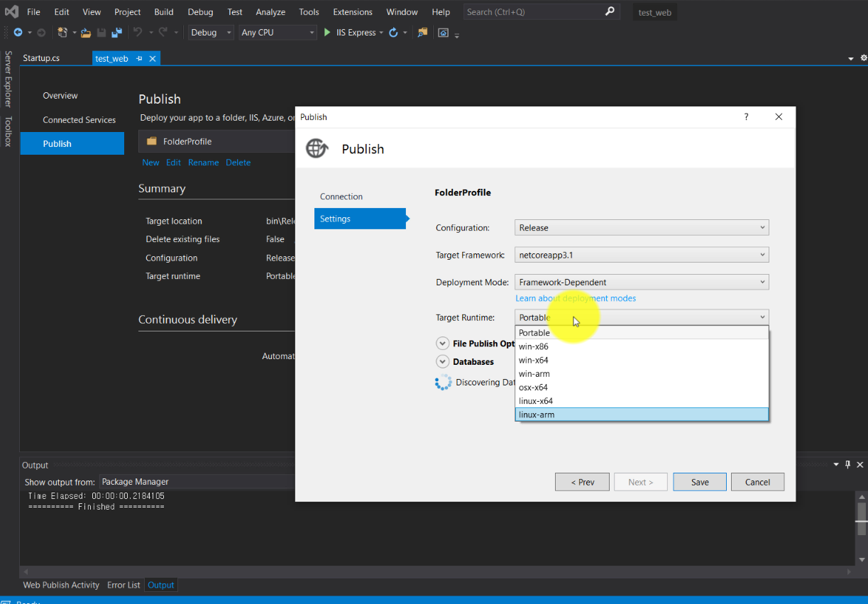 배포 메뉴를 선택하고 배포 프로필을 만들 때 기본적으로 현재 지원하는 플랫폼에서 모두 실행가능한 Portable으로 되어 있는데, 보다 파일을 간소화 하고자 한다면, 타켓 플랫폼을 지정하여 최적화를 할 수 있다.