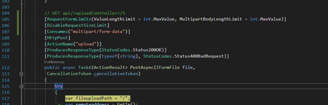 public async Task<IActionResult> PostAsync(IFormFile file, CancellationToken cancellationToken)