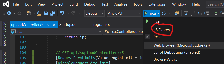 먼저 .Net Core 답게 현재 구동하는 환경이 IIS Express인지 확인한다.