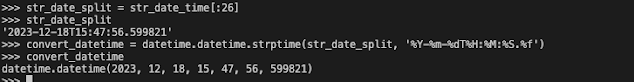 2023-12-18T15:47:56.599821의 문자열 인덱스는 26이다. 그럼 26으로 먼저 잘라보도록 하자.