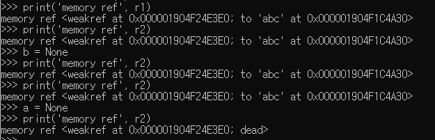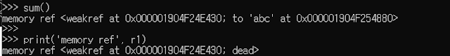 memory ref <weakref at 0x0000026AE718FA60; to 'abc' at 0x0000026AE714A1D0>