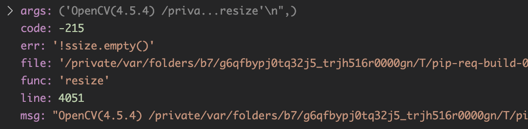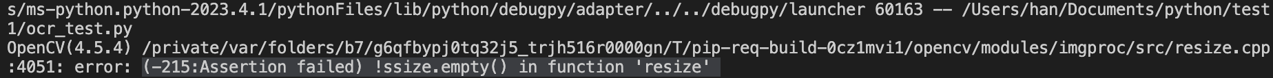 Python - Error cv2 (-215:Assertion failed) !ssize.empty() in function 'resize'